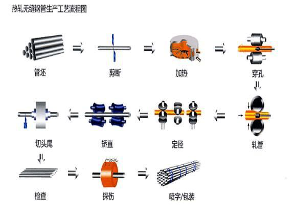 Le schéma de processus de production des tubes en acier sans soudure laminés à chaud est le suivant :